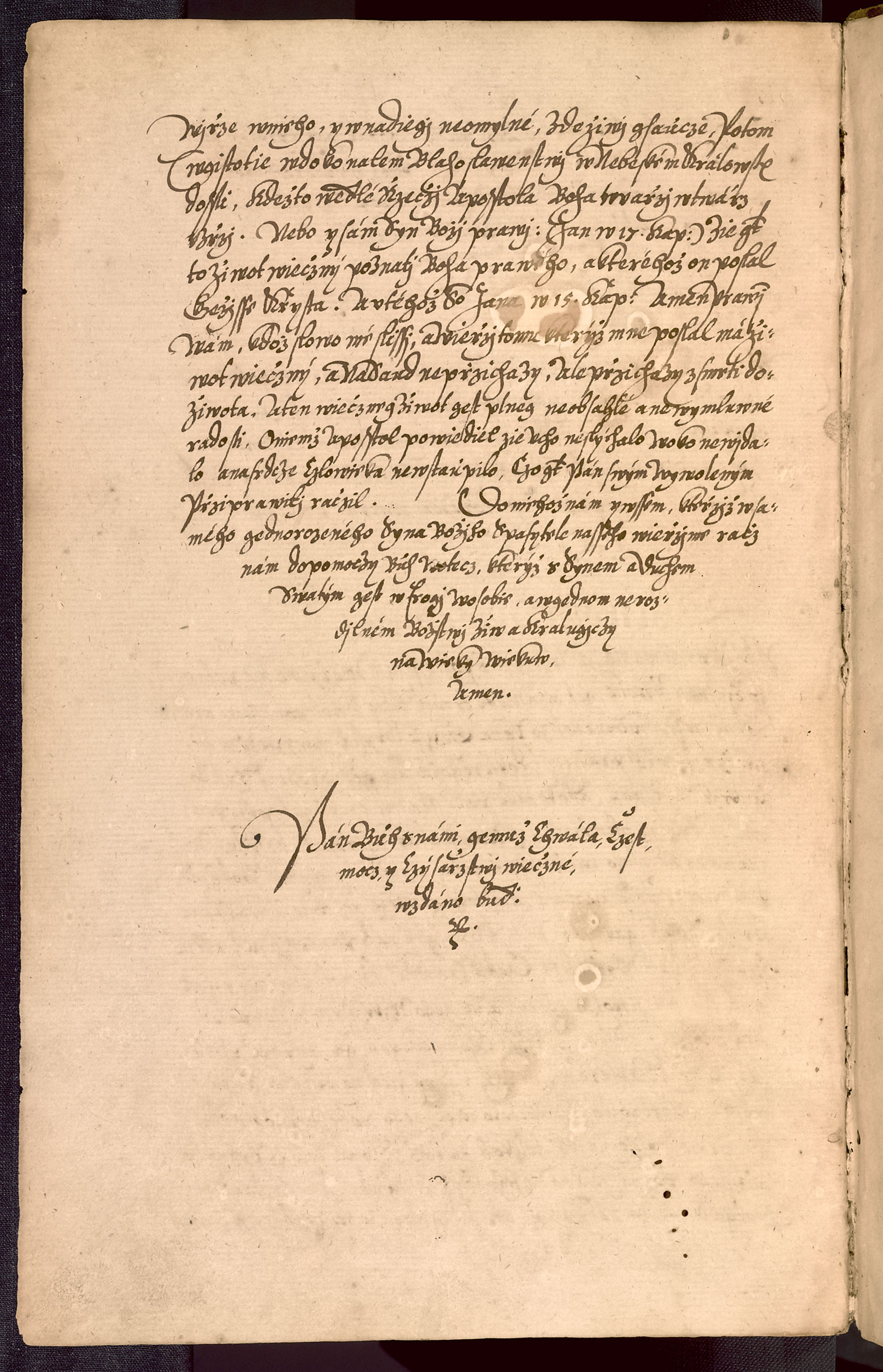 | Název | wssech Třij Stawůw Králowstwij Cžeského | z Wijry Tělo a Krew Krysta Pána pod Obogij přigijmagijcých [v Praze]. Létha Páně: M.D.Lxxxiij [= 1583] G.[iří?] D.[ačický?]. |